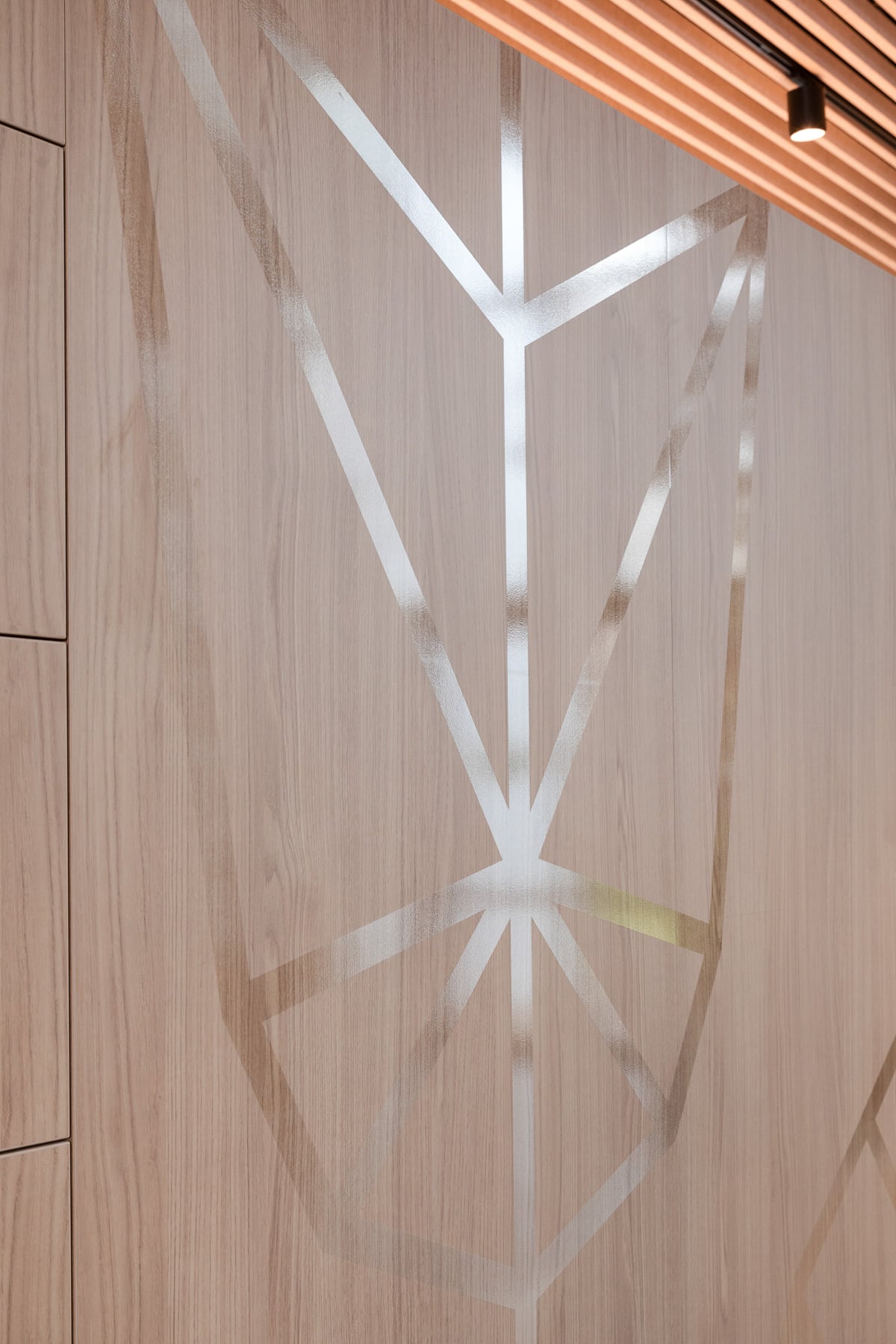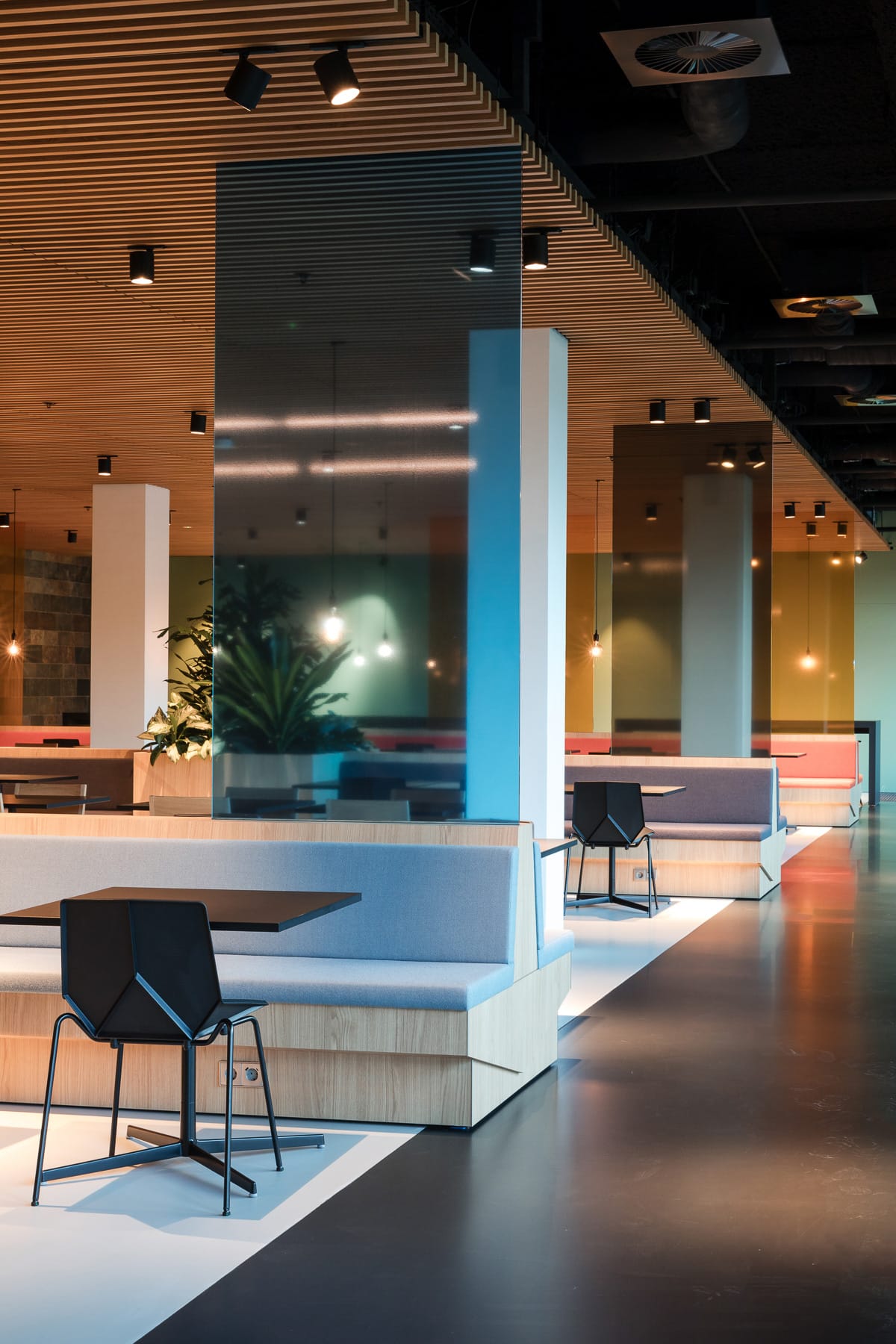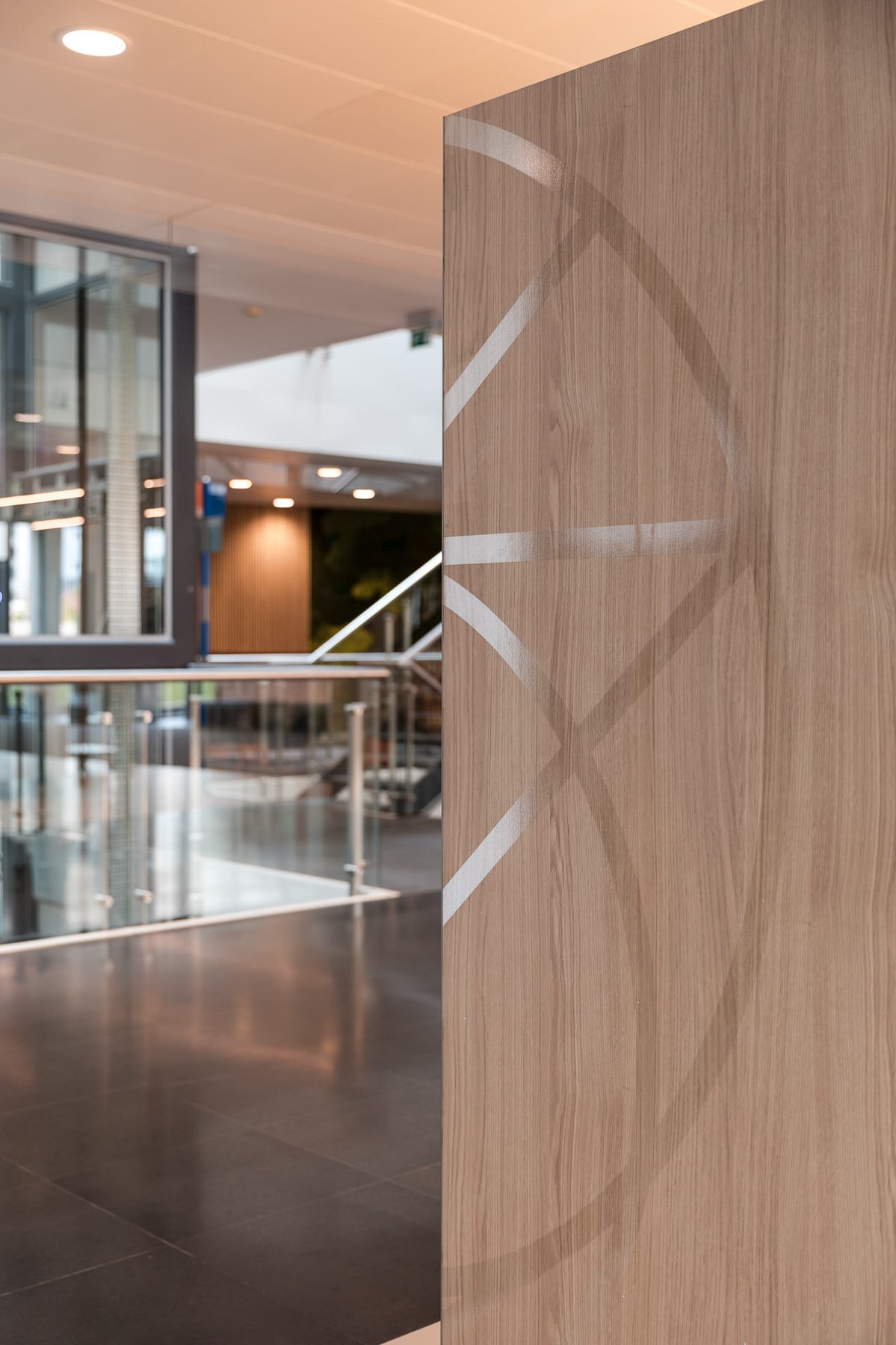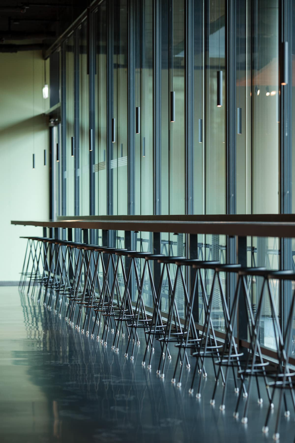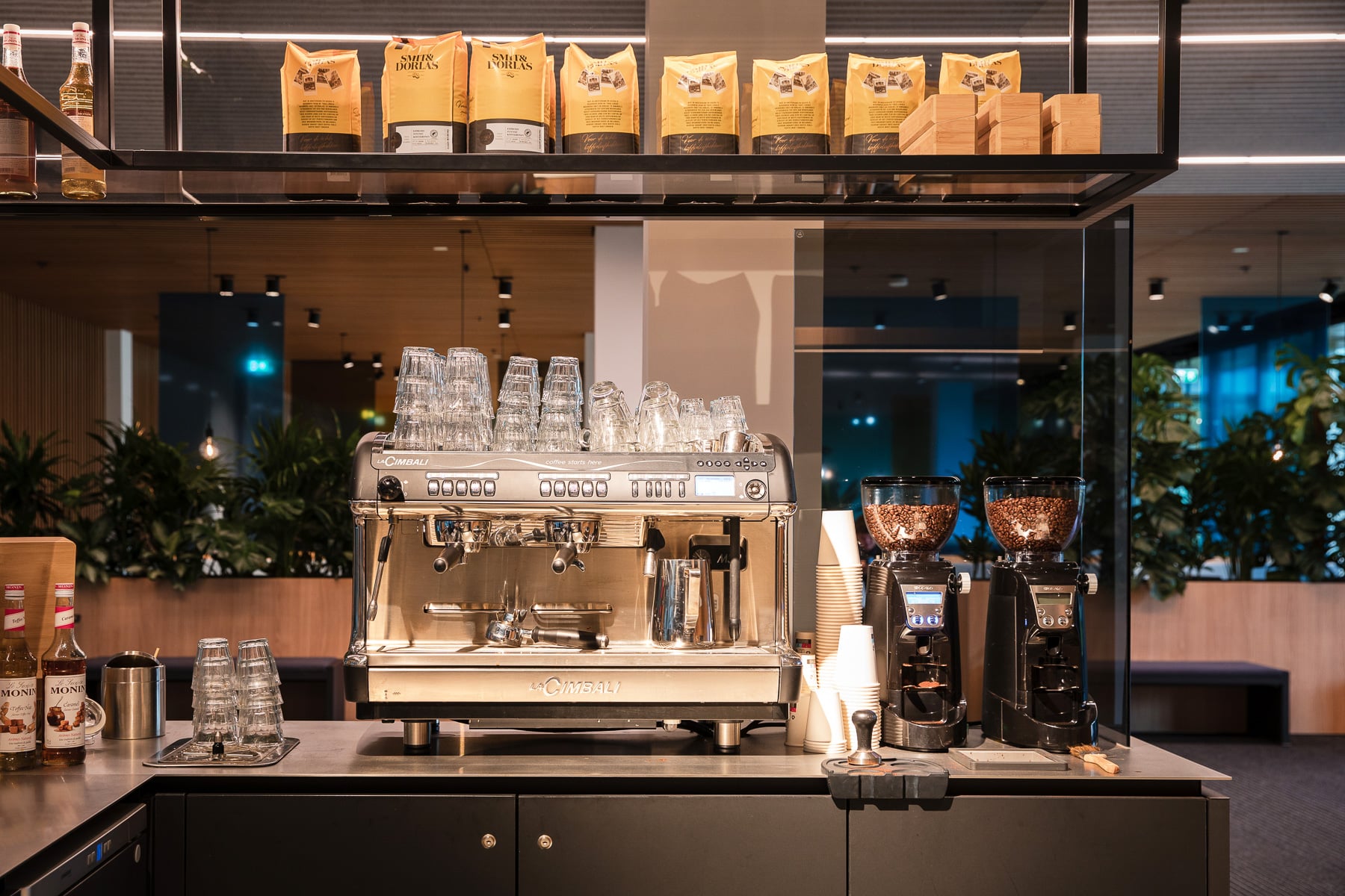 Een volledig op maat gemaakt interieur. De stijl van zowel de keuken, meubels en receptie lopen vloeiend in elkaar over. Meubels lopen over in plantenbakken, wat bijdraagt aan speelsheid en sfeer.