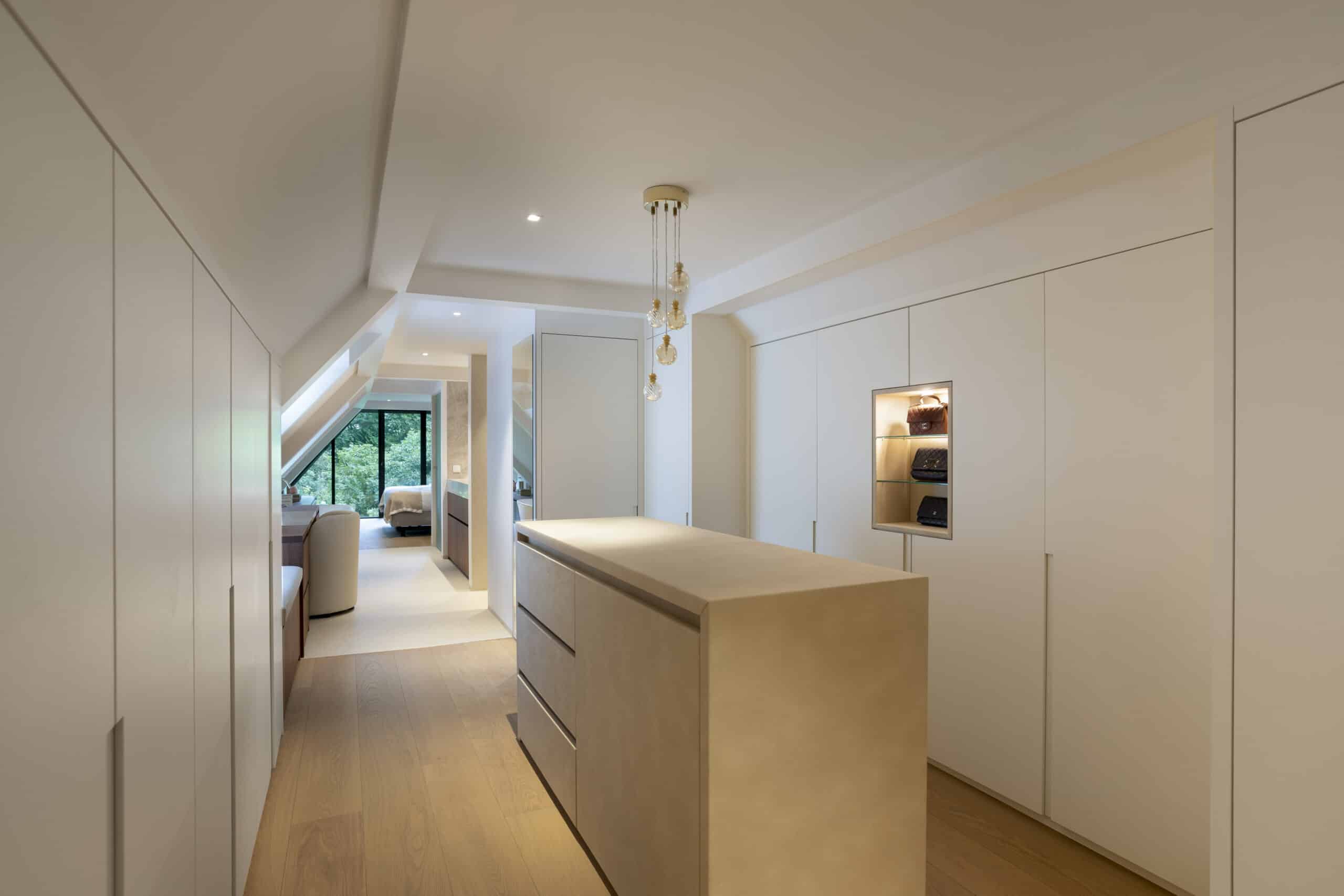 Deze mooie woning staat in Tilburg. Wij verzorgden de maatwerk badkamermeubels en de riante inloop kledingkast op de eerste verdieping van de woning.